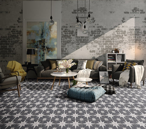 Vintage is a combination of greyscale patterned tiles in a Hexagonal shape.