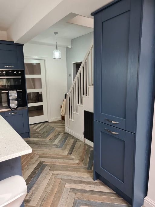 Small format wooden-effect porcelain tiles in a range of colours to create a fresh, modern look.