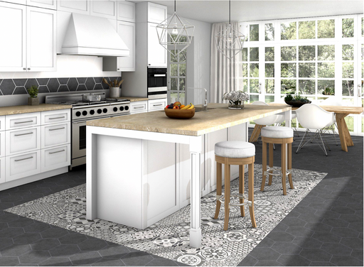Vintage is a combination of greyscale patterned tiles in a Hexagonal shape.
