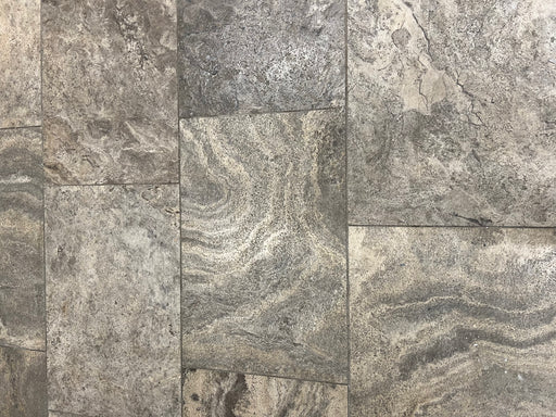 A Travertine tile of beige and earth complexion, bejewelled with crystallised hints of sapphire blue, contrasted with undertones of grey. Availa...