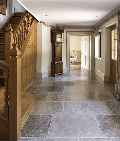Beautifully rustic with moody grey and charcoal tones, this vintage looking French limestone is perfect for traditional country design schemes.